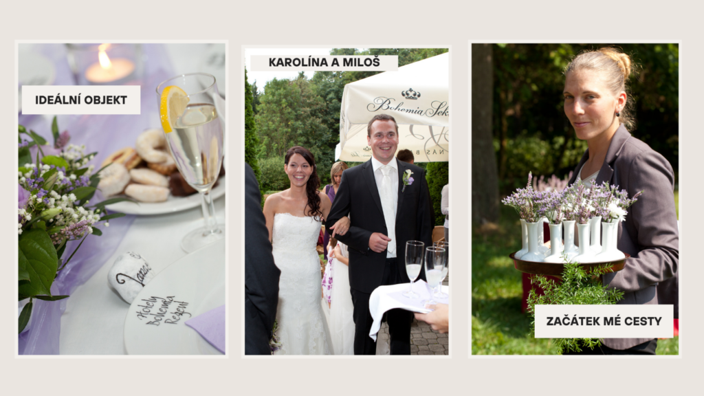 Díky hotelové škole jsem získala skvělou orientaci v otázkách slavnostního prostření, dekorace a také složení svatebních menu či teplých bufetů a rautů.